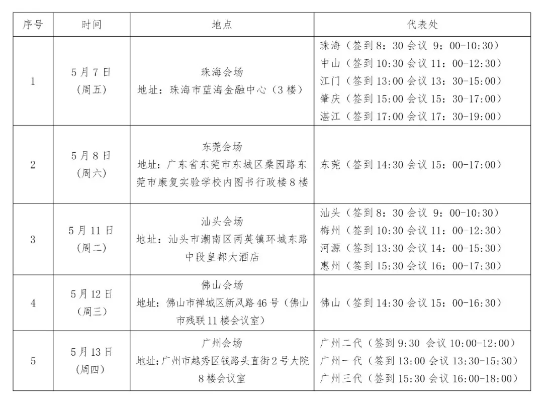3. 驻地代表处各服务队报名参加工作会议的会员代表;