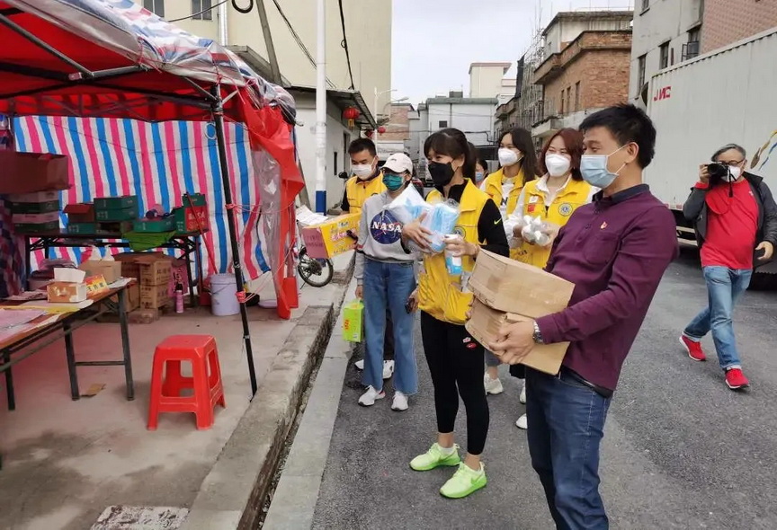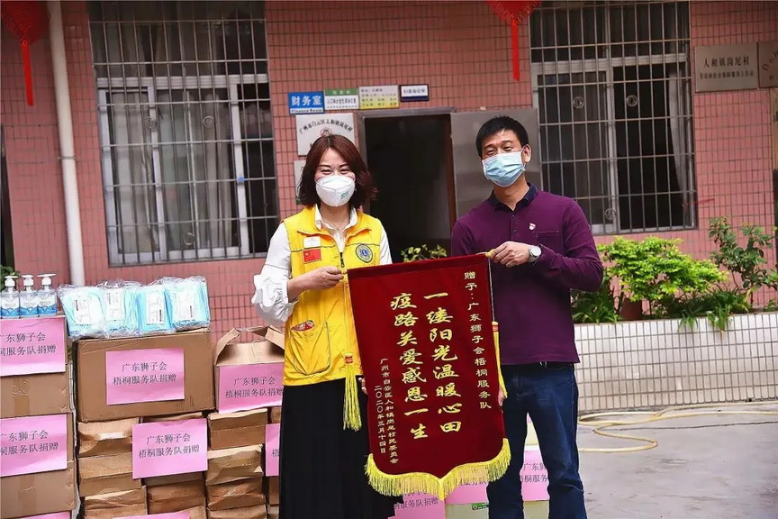 在抗击新冠肺炎疫情的战斗中,乡村、社区是前沿阵地,防疫工作人员舍小家、顾大家、全力以赴,为群众构筑起一条疫情防控的乡村、社区防线。近日,广东狮子会梧桐服务队了解到广州市白云区人和镇岗尾村因村内企业陆续复工复产,面临着志愿者人手不足、防疫物资紧缺的困难。了解情况后,梧桐服务队紧急行动,为岗尾村筹集2000个医用口罩、5桶84消毒液、180支免洗消毒凝露及一批慰问品,用实际行动为社区疫情防控工作加油续航。 2020年3月14日下午,梧桐服务队在现任队长黄子玲的带队下,第一时间把这批物资送到岗尾村,并分发到村里值勤点值岗人员的手中。 捐赠现场,岗尾村村委刘书记表示:“看着村里的一线工作者日夜奋战在一线上,面临着防控工作压力大、防疫物资紧缺的各种困难,我心里无比的焦急和心疼。十分感谢广东狮子会,为我们带来了这些珍贵的防疫物资,大大缓解了防疫工作的燃眉之急!” 目前,疫情防控工作已进入总攻阶段。作为志愿者,梧桐服务队每位会员将继续全力以赴,尽己所能,支持一线抗疫工作者,为打赢疫情防控阻击战贡献更大力量。 在此,特别嘉许康海鸾狮姐!康海鸾狮姐早上响应广东狮子会号召,前往天河区广百中怡血站无偿献血,中午就马不停蹄地赶到白云区岗尾村,参与本次社区捐赠服务