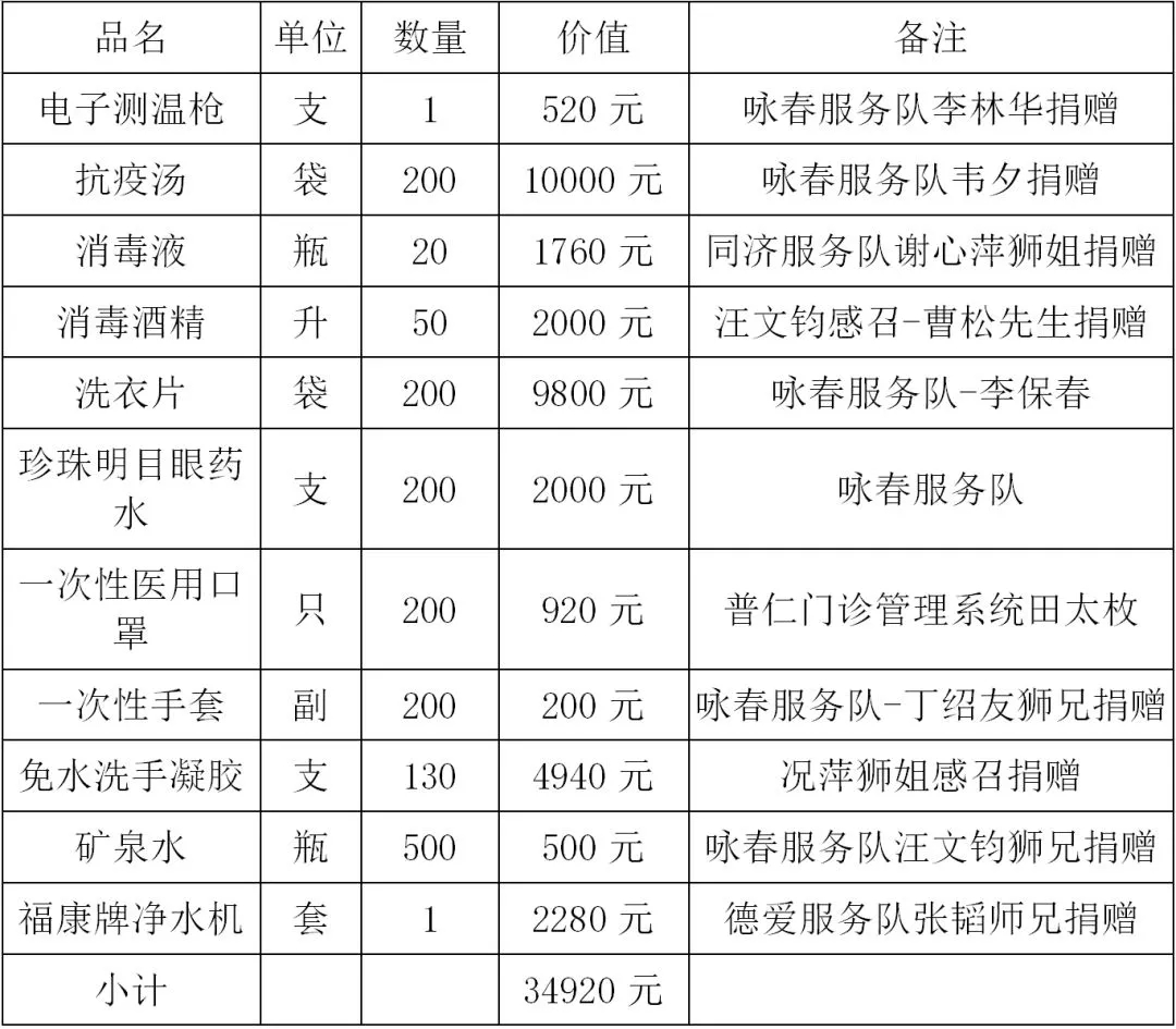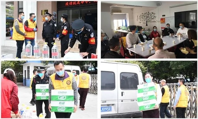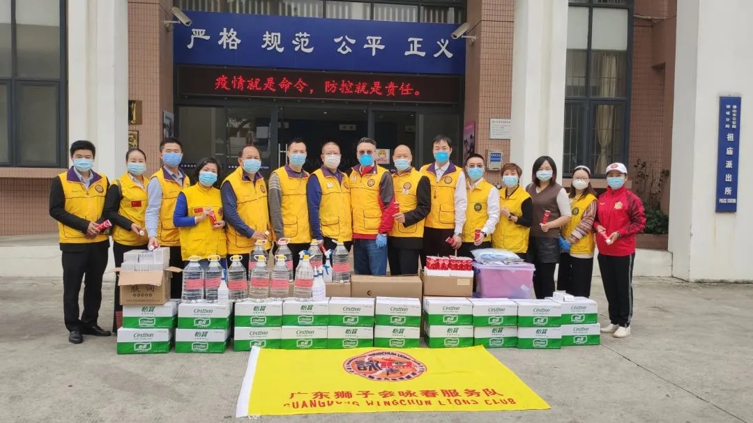 在祖庙派出所巡防中队母义队长的感召下,为感谢祖庙派出所全体干警的辛勤付出,支持并巩固基层抗“疫”工作,广东狮子会咏春服务队于2020年3月15日上午11时在祖庙派出所开展了“关爱人民警察、携手抗击疫情”服务。为奋战在一线的民、辅警送上辖区家人的温暖,让他们感受到警民一家亲的鱼水之情! 本次服务得到了咏春服务队、同济服务队、德爱服务队、爱心企业佛山市马上到清洁有限公司、广东维氛空间科技有限公司的大力支持,大家共同对活动的筹备、开展出谋划策,积极感召、踊跃物资,至活动开展共统筹到价值34920元的物资。咏春服务队现任队长汪文钧、德爱服务队现任队长张韬、咏春服务队上届队长莫明光等多位会员、爱心人士参加了本次服务。 当前,在全国人民的共同努力下,战“疫”形势正日渐向好,让我们更加紧密地团结起来,早日夺取抗击“新型冠状病毒”的最终胜利。