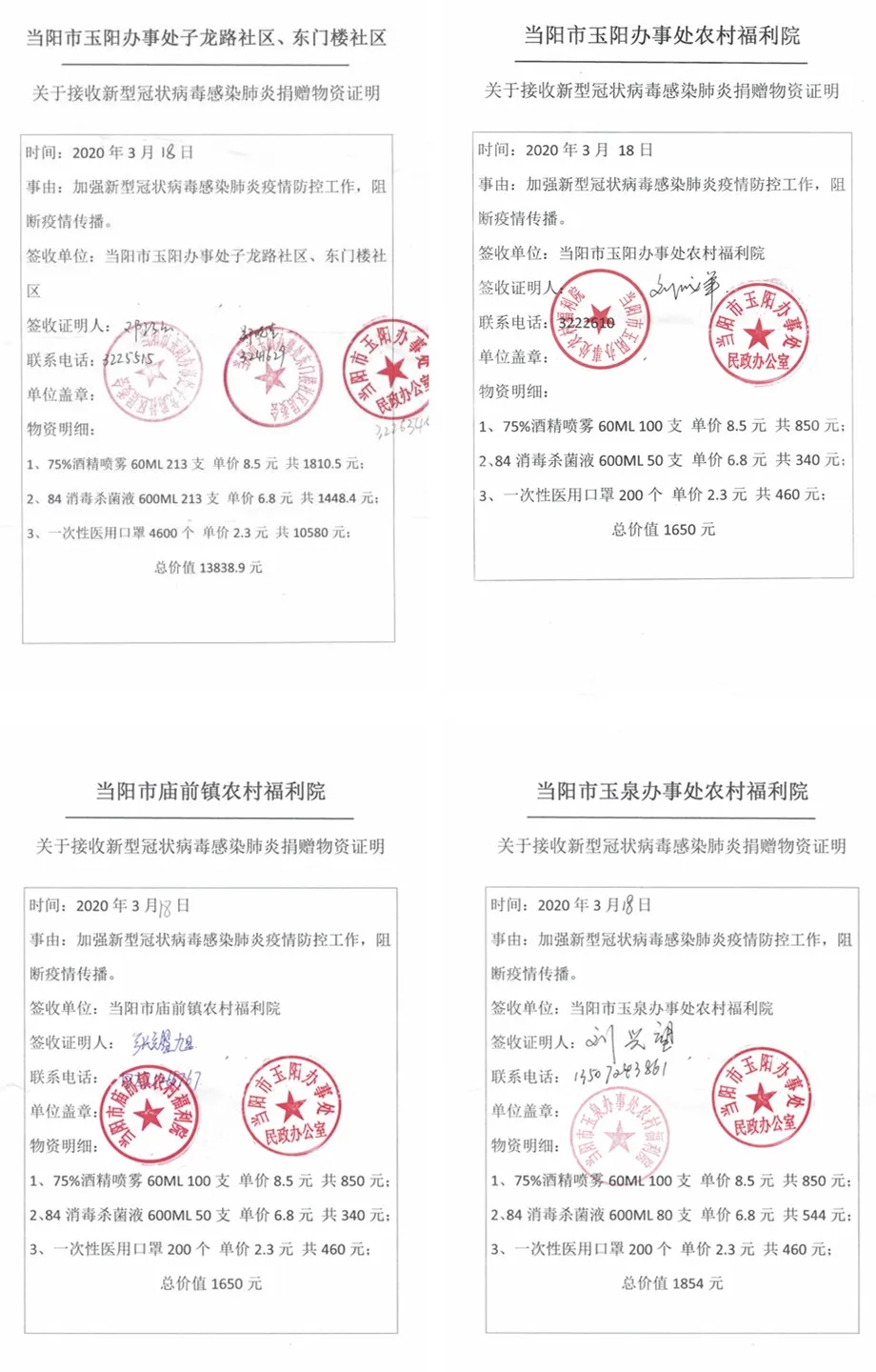 当前疫情防控有了重大进展,但湖北省当阳市防疫物资仍处于紧缺状态。为此,广东狮子会喜悦服务队为当地福利院、社区困难家庭筹集了513支酒精喷雾、393支消毒杀菌液、5200个医用口罩等疫情防控物资,助力湖北省当阳市当地群众战胜疫情。 3月18-19日,该批物资由物流公司运抵当地,并由当地志愿者把物资分派到两个社区(子龙路社区、东门楼社区)的困难家庭及三所农村福利院(当阳市玉阳办事处农村福利院、当阳市玉泉办事处农村福利院、当阳市庙前镇农村福利院)。 疫情无情人有情,灾难前面显真情。感谢玉阳办事处疫情防控指挥部防疫小组领导及社区、福利院相关单位负责人及当地志愿者的大力支持与配合!感谢喜悦服务队全体会员的拳拳爱心,无私奉献!期待疫情过后,我们继续携手,谱写公益服务的新篇章。