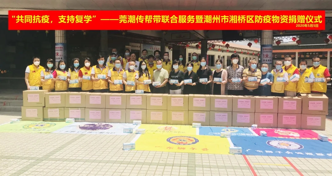 当前,随着新冠肺炎疫情防控形势趋向好转,广东省各地正有序推进学校复学复课工作。2020年5月5日,广东狮子会东莞代表处联合潮州代表处筹建小组向潮州市多所学校捐赠防护物资,为莘莘学子返校保驾护航。 本次活动共捐赠口罩60000个,其中东莞代表处捐赠56000个、潮洲代表处筹建小组韩江服务队捐赠4000个。这批口罩将被派发给潮州市城南小学、华侨学校、三村小学、云梯小学、来宜小学、上洲小学六所学校的困难学生。潮州市湘桥区教育局局长余焕湘、副局长黄凌、副股长丁建玲、东莞代表处主任杨小清、第一副主任卢巨良、潮洲代表处筹建小组主任柯文伟等领导、会员及各所学校教师代表出席了捐赠仪式。 急难有情,情有馀兮。捐赠仪式上,教师代表表示:“复学之际,广东狮子会会员们的爱心捐赠,有效地缓解了学校疫情防控物资的压力,为师生健康保驾护航。” 本次活动缘起于4月21日,东莞代表处收到发自潮州代表处筹建小组发来的联合服务邀请函,请求支持潮州湘桥区贫困学生、残疾中学生防控口罩,为开学做好防控物资供应的准备。 为助力湘桥区各中小学顺利复学,东莞代表处主任团队高度重视,感召东莞代表处第十分区主导本次服务。十分区主席郑文清心系莘莘学子,积极担当,动员缘梦、广顺、银瓶、晴天、百合等多支服务队会员共同参与服务,并圆满完成集资目标。郑文清狮兄指出:“本年度东莞代表处与潮州代表处筹建小组缔结了友好代表处,搭建‘传、帮、带’交流平台,希望通过合作交流,能够引发更多的公益力量共同关注潮州当地的困难青少年,让更多的困难青少年能够专注于学习,用知识改变命运。”