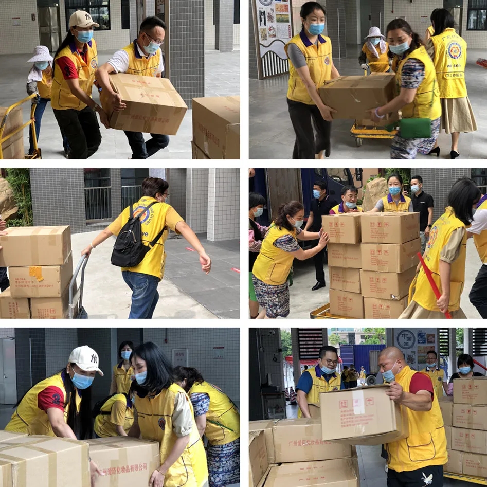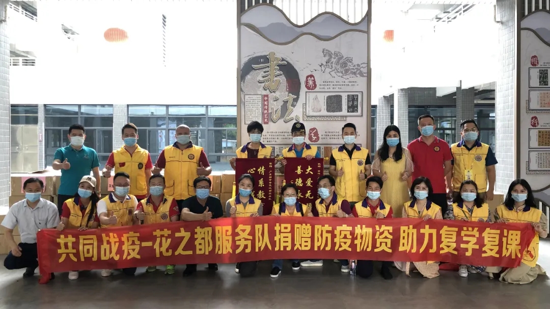 “学生开学,做好消毒工作很重要!在了解到近期花都区各所小学都已陆续开学,狮兄狮姐们都想着为学生们做些事情,希望能为学校做好疫情防控尽绵薄之力。”这是吴加红狮姐的心声,也是花之都服务队每一位会员的心声。 5月27日下午,广东狮子会花之都服务队联合中海(广州)生物科技有限公司向广州市花都区教育局城区教育指导中心捐赠10380只口罩、400支随身消毒液、500包消毒纸巾、3000支1升装消毒液,用于学校环境消毒,为花都区学校开学助一臂之力。 下午2:30,大货车满载着3000支消毒液来到学校,看到这份“开学大礼”,学校老师们既激动又兴奋,连忙和狮兄狮姐们一起把消毒液搬到存放地点。 随后,在花都区第五小学会议室举行了捐赠仪式。仪式上,花都城区教育指导中心主任张帜表示:“随着学生陆续返校复课,学校的防疫物资面临紧缺,非常感谢狮子会和爱心企业捐赠那么多的消毒液,我们一定会继续做好防疫工作,为花都区各所学校师生的健康保驾护航。” 捐赠仪式结束后,张帜主任进一步向狮兄狮姐们介绍了花都区返校复课工作情况,花之都服务队也将继续关注学校师生的需求,秉承“正己助人 服务社会”的宗旨,继续为有需要的群体带来更精准到位的服务。 花都城区教育指导中心主任张帜分别向花之都服务队、中海(广州)生物科技有限公司颁发感谢状