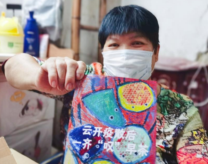 “杰姨收好啦,里面有一封给你的慰问信,同时还配备一些抗疫物资,还有一包茶,在家还能泡泡茶喝。”记者解释道:“杰姨,信的内容很重要,你要记住上面写的两个电话,信收下,平时遇到什么问题也可以打过来,我们会有人接听的。” 看着慰问信,杰姨很是惊喜。“没想到你们还带手信来了,这封信——还画了点心,待疫情结束,‘一起叹早茶’,真的好温暖,我会好好收下的。电话我记下了,但是你们不用担心,我也不担心,因为真的有太多好的人了。”她说,“虽然我们一家不是在这里土生土长,和这里的街坊只是点头之交,但并不妨碍彼此关心。这里有很多人互帮互助,困难再多,也能一个个解决。我们一定早日战胜疫情。” 治愈人心的,是一封特别的信;而画出这封信的,是两位特需人士