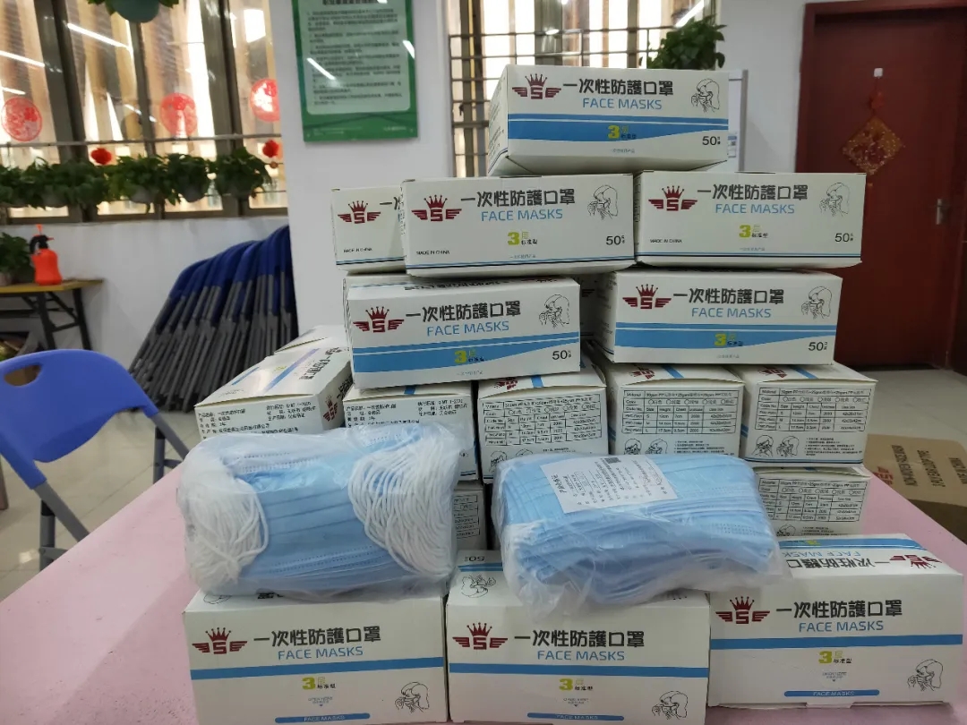 上善服务队为寮步康就中心捐赠的一次性防护口罩