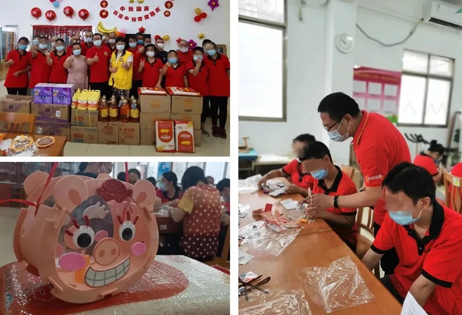 青少年服务 敬老服务 5.9月18日,和爱服务队开展“温馨工程——走进鹤龙街、钟落潭镇、人和镇、太和镇中秋社区送温暖活动"。为78户社区困难家庭和独居长者送去节日的问候,共支出服务经费46800元。和爱服务队已连续第六年开展这项服务。 扶残服务 6.9月17日,中心、钻石服务队的狮兄狮姐们来到海珠区南石头工疗站,与31名学员共庆中秋节。服务活动中,会员、志愿者们与老师、学员们不仅进行了亲切的交流,还一起合唱了《宁夏》《朋友》《明天会更好》等歌曲,气氛热烈。 7.9月18日,梧桐服务队举办“鱼珠工疗站关爱服务”,与28位学员一起团团圆圆过佳节,为他们送上节日慰问及关爱,并与学员们一起亲手制作灯笼。 乡村振兴服务 其他服务
