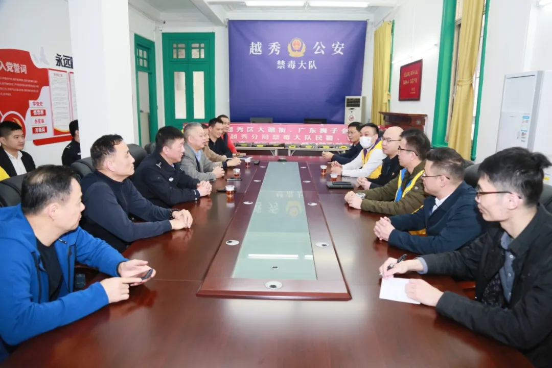 座谈会 座谈会 随后,李光日副局长、蔡叔强大队长围绕打击新型犯罪、提升辖区群众反诈防骗意识、做好心理关爱与人文关怀工作等事项,与大塘街道办、广东狮子会展开研讨。郑子殷会长表示:“此次活动不是结束,而是开始,广东狮子会将投入力量开展相关服务项目,为构筑共建共治共享新格局出一份力。” 长期以来,广东狮子会与办公所在地的越秀区大塘街各单位部门保持紧密合作,并在新春前夕连续组织对大塘街民警、辅警、困境儿童、普通群众的关爱活动,深入贯彻落实“扎根社区,用心服务”年度口号,得到了街道负责同志以及社区群众的一致好评。