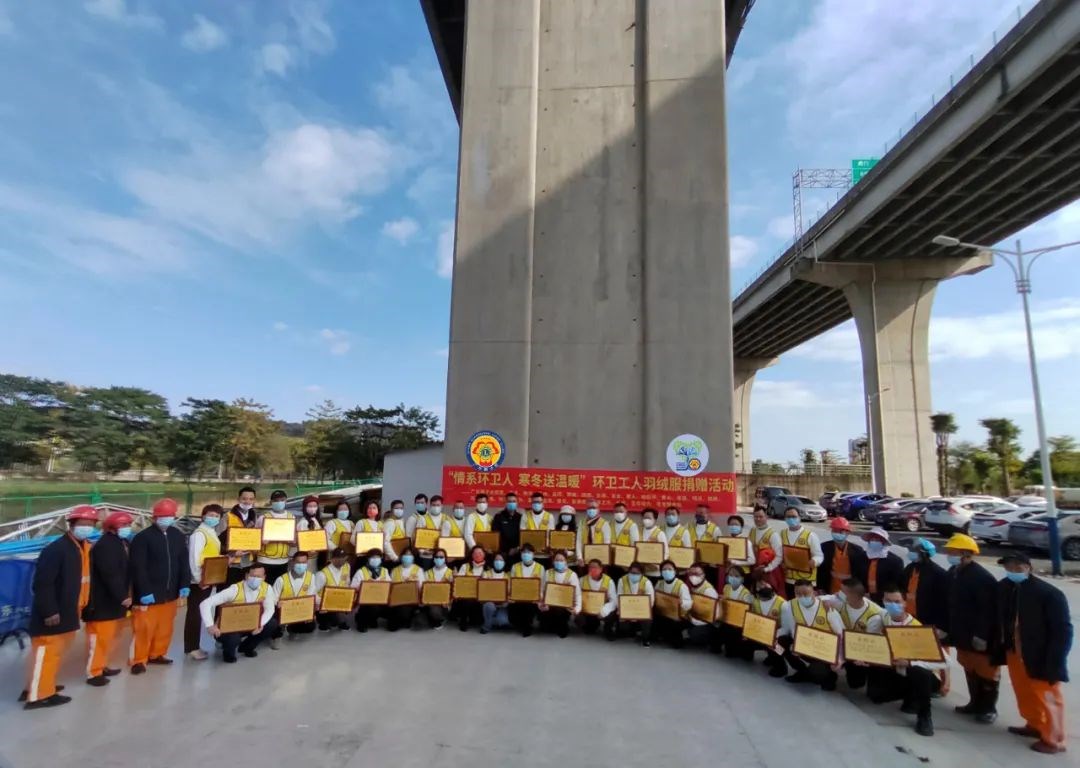 今年开春后,天气依然寒冷,东莞市虎门镇的2500多名环卫工每人收到了广东狮子会捐赠的羽绒服,让这些城市美容师倍感温暖。 据环卫工人介绍,早上天还没亮,他们就要在不到5摄氏度的户外工作,给日常工作造成很大困扰。为此,感恩服务队前队长岑定基通过与东莞市城市管理和综合执法局虎门分局对接,收集需求,并在第一时间为环卫工人送上这批羽绒服。 2022年2月23日,“ 寒冬送温暖,情系环卫人 ”捐赠仪式浓情上演。该活动由广东狮子会感恩服务队牵头,广东狮子会27支服务队参与其中,共计捐赠羽绒服2500件,价值25万元。虎门城管分局局务成员、公用事业服务中心工会主席李志文,虎门城管分局环卫绿化队队长王昌煌,广东狮子会东莞代表处主任区浩景、秘书长陈学国、第六协调长陈少兰、第十三协调长吴冬梅、感恩服务队队长陈松仙以及各参与服务队代表出席仪式。 仪式上,区浩景主任衷心感谢各服务队的鼎力支持,为虎门环卫工作者带来了温暖;更感谢无论严寒酷暑都坚守在工作岗位的城市美容师们,感谢他们吃苦耐劳,为城市除垢布新,才让我们得以在清新优美的环境中生活。 王昌煌队长真诚感谢广东狮子会各服务队以及爱心企业为虎门镇环卫事业贡献力量,并希望未来能继续携手并肩,为共建、共享洁净美丽虎门努力! 特别鸣谢:广东狮子会本色、有为、善为、龙湾、生命之光、丰泽、长虎、飞鸿、生命动力、星海、花城、星辉、玖善、普光、旗峰、同德、爱满贯、长缘、粤龙、百合、唐人、地势坤、星火、粤旗、明泽、鹤舞服务队。 感谢各参与服务队、爱心企业