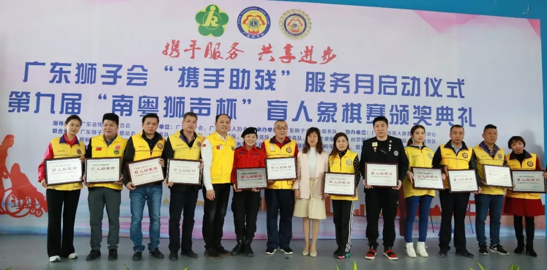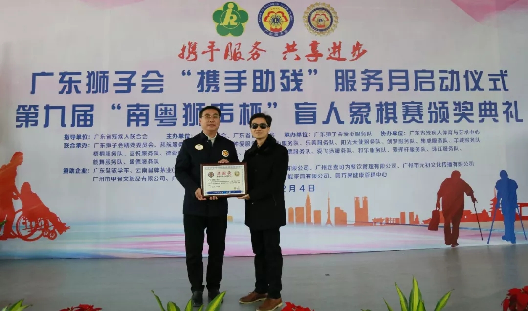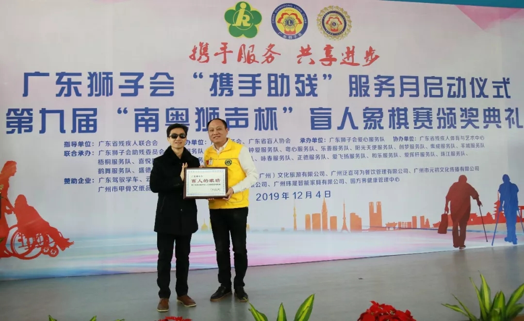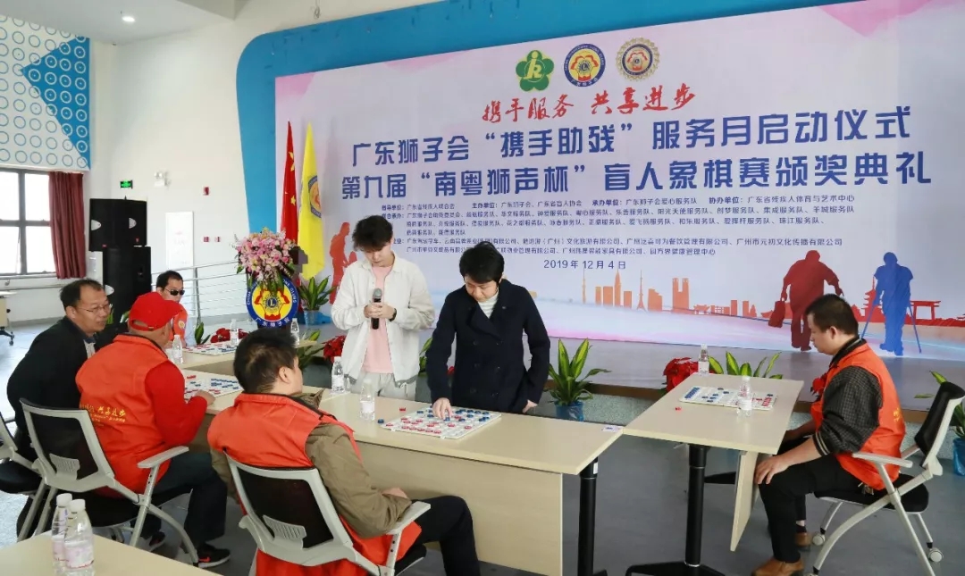 12月4日早上,在广东省残疾人辅助器具中心,广东狮子会会员与参加第九届南粤狮声杯盲人象棋赛的选手齐聚一堂,共同开展广东狮子会“携手助残”服务月启动仪式。本次活动由俞前狮兄担任大会主席,李甲甲狮兄担任大会主持人。广东省残组联部副部长吴献忠、广东省盲协主席黄健飞、广东省肢协主席刘志艳、广东省聋协主席范宜涛等领导、嘉宾,广东狮子会2019-2020年度会长詹晓阳狮兄、第一副会长郑仕荣狮兄、秘书长吴强狮兄、全球会员发展团队统筹委员会(GMT)主席邱军狮兄、全球服务团队统筹委员会(GST)主席杨建炜狮兄、广州第一代表处主任张雷狮兄、助残委员会主席陈世君狮兄、血液银行委员会主席陈伟狮兄、应急救援委员会主席路强狮兄、爱芯工程委员会主席邹新华狮兄等会员出席了本次活动。 仪式上,广东省残联组联部副部长吴献忠致辞:祝贺南粤狮声杯盲人象棋赛取得圆满成功;感谢广东狮子会在本年度以来举办多项助残服务,真真切切关心关怀残疾人,同时感谢各方对本次活动的支持和参与;希望南粤狮声杯盲人象棋赛能够越办越好,影响力越来越大,期待各位盲人棋手明年继续踊跃参与。 广东省残联组联部副部长吴献忠 广东狮子会会长詹晓阳狮兄代表会长团队对各支持单位、各位会员表示衷心的感谢和崇高的敬意,大家共同的努力使南粤狮声杯盲人象棋赛办得更加规范、更具规模。在“携手助残”服务月里,广东狮子会将举行一系列的助残服务,感谢残疾人朋友给我们服务、成长的机会。未来,广东狮子会将通过文化艺术助残的方式,让更多残疾人朋友找到自己的理想和抱负,受到社会的尊重。 广东狮子会会长詹晓阳狮兄 广东省盲协主席黄健飞讲话:在三天比赛时间里,广东狮子会会员奔走于机场、车站等地接送盲人朋友,为盲人朋友打点好起居生活,为比赛做好各项准备工作,衷心感谢会员为盲人朋友的辛勤付出。未来,盲协将携手广东狮子会,不断完善南粤狮声杯的赛制,不断扩大比赛的知名度与影响力。 广东省盲协主席黄健飞 随后,大会进行了简单而隆重的“携手助残”服务月启动仪式。广东狮子会希望通过持续不断的服务,感召更多的社会力量共同参与助残服务,搭建残健共融平台,为众多残疾人提供切实可行的帮助和扶持,传递对残疾人的无限关爱。 领导、嘉宾、会员共同启动“携手助残”服务月 大会主席俞前狮兄(左)、大会主持人李甲甲狮兄(右) 广东狮子会为广东省盲协颁发感谢牌匾 广东省盲协为广东狮子会颁发感谢牌匾 为各联合服务队颁发感谢牌匾 为各爱心企业颁发感谢牌匾 启动仪式后,现场进行了第九届南粤狮声杯盲人象棋赛的颁奖礼。第九届南粤狮声杯盲人象棋赛由广东省残联指导、广东狮子会、广东省盲协主办,广东狮子会助残委员会、爱心服务队等单位联合承办,赛事举办九年以来,深受盲人朋友们的喜爱。本届比赛经过了三天七轮的激烈角逐,总裁判刘钰宣布本届比赛获奖名单:男子组一等奖:梁文清;二等奖:李彪、冯跃明;三等奖:李福生、蔡达伟、蒙永胜;优胜奖:阎崇龙、李国忠、车起、李明喜、李韶明、周君崇;女子组一等奖:顾燕芳。 领导、嘉宾、会员分别为获奖棋手颁奖 本次比赛还设有大师对弈环节,会员邀请广东省象棋协会特级大师陈幸琳坐镇擂台,与盲人棋手进行“车轮战”比赛。盲人棋手们全神贯注,沉着冷静地排兵布阵,对阵大师。与象棋高手对垒的经历给盲人选手留下了终生难忘的记忆。 车轮战现场 盲人棋手对弈比赛现场 盲人棋手用特制的棋子和棋盘进行对弈 为保障本次盲人象棋赛能够顺利开展,到处可见会员忙碌的身影,他们不畏辛劳,为活动提供热情、周到的服务,为盲人棋手营造了一个安全、舒适的比赛氛围。在接下来“携手助残”服务月里,会员还会奔波于各地,开展形式多样的助残服务,竭尽所能为残疾人朋友提供帮助,搭建残健共融平台,展现广东狮子会“正己助人 服务社会”的会员风采。 感谢一众辛勤付出的会员 自立会以来,广东狮子会秉承扶残助弱的理念,积极投身残疾人事业,特别是在2019-2020年度将助残服务列为重点服务领域后,广东狮子会积极配合广东省残联,携手五大协会,奔赴各地开展残疾人扶贫协作工作,连续开展“我是你的眼 陪你看世界”盲人节系列服务、资助白内障患者做复明手术、举办肢体残疾人围棋比赛、为广州盲人“帮帮看药”、“帮帮看家”信息无障碍工程筹募资金,每一项服务都凝聚着会员的赤诚爱心,让广大残疾人提高了工作、学习和生活的能力,享有教育、就业、融入社会的机会,为进一步营造扶残助残的良好社会氛围作出贡献。 连续多年承办南粤狮声杯盲人象棋赛的广东狮子会爱心服务队