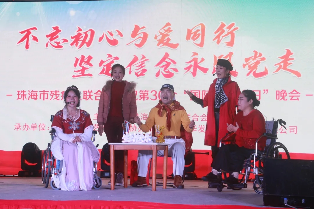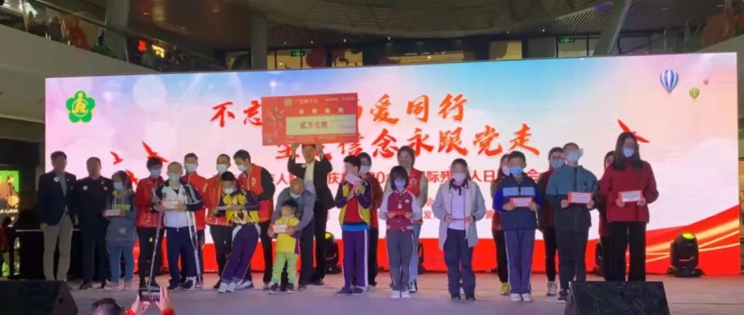 顾来宁主任代表广东狮子会珠海代表处上台接受表彰 除了残疾人表演的节目之外,社会各界也以不同的形式汇爱助残。广东狮子会珠海代表处的助残志愿者也准备了《杨门女将穆桂英挂帅》《智取威虎山》两个表演节目,展现了珠海助残志愿者积极向上的精神风貌。 晚会上,广东狮子会珠海代表处为珠海市十位残疾人学生每人捐赠助学金2000元,合计支出服务经费2万元。珠海市爱心促进会和华实珠海文化发展有限公司现场捐赠价值11.5万元的艺术疗愈公益项目。随后市残联还为20家扶残助残单位及爱心人士进行现场答谢并颁发致谢台座,感谢他们以博爱的情怀和强烈的社会责任感,关爱残疾人。 捐赠助学金环节 市残联党组书记、理事长梁壮表示:“社会各界的爱心帮扶,为我市残疾人的疫情防控和重建美好生活注入了温暖和力量,充分彰显了社会组织、企业和个人的责任担当。希望全社会继续关心关注残疾人,共同用助残爱心推动社会文明进步,营造残健共融的社会氛围,促进残健携手共谱残疾人事业新篇章。”