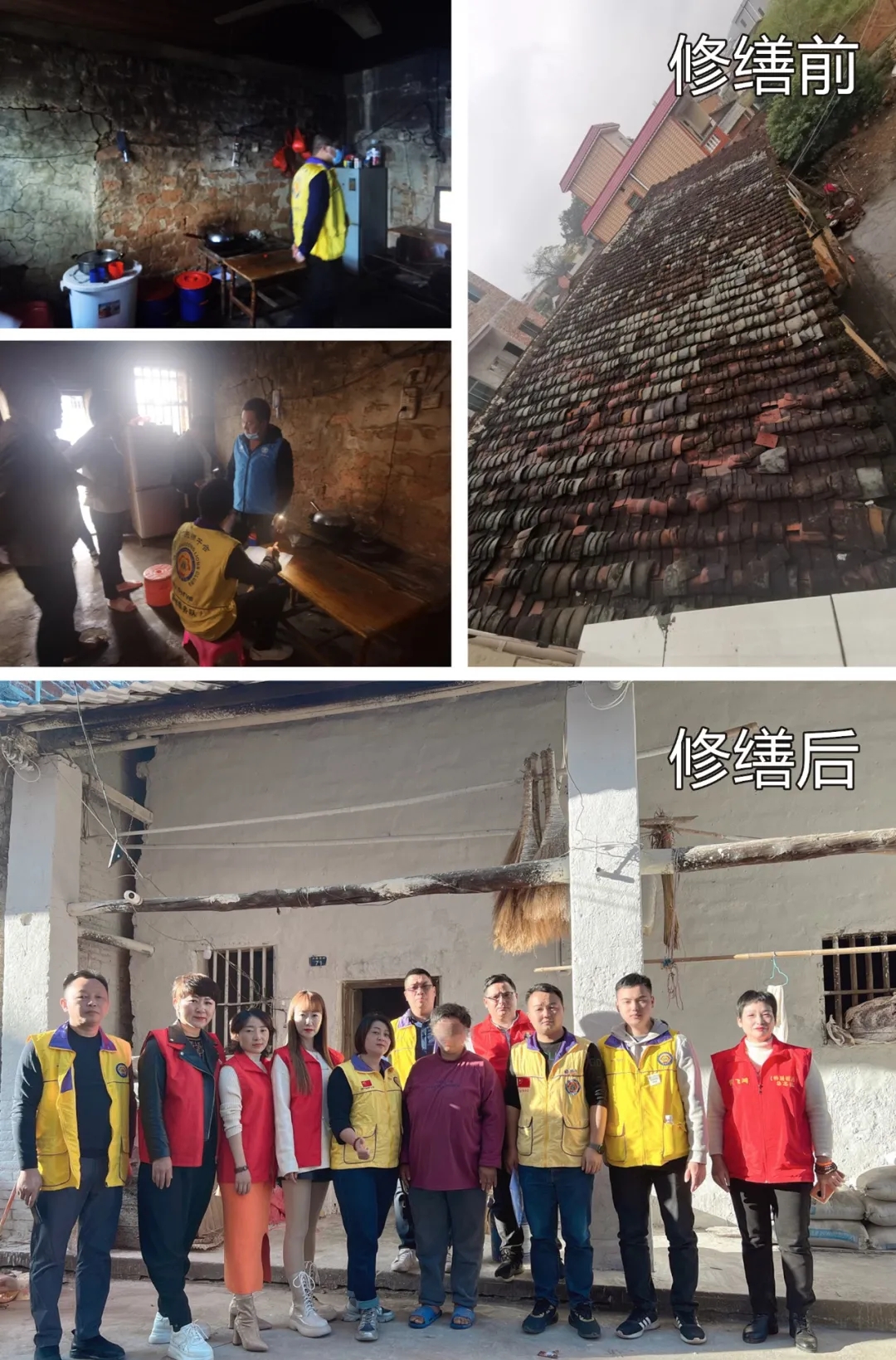 资助王大哥家庭修缮房屋前合影及对比图 图为肺癌患者莲大姐接收慰问金及物品 图为残友珍大姐接收慰问金及物品 参加本次活动领导、嘉宾、会员:韶关市残联理事长叶济熊、一级调研员张朝养、副理事长谭祥红、副理事长王心钢、四级调研员赖启富,浈江区残联理事长黄文忠,武江区残联副理事长刘芷伊,广东狮子会会员管理一部第三协调长江鸿、韶州服务队现任队长肖新耀、和爱服务队现任队长刘瑞春、红棉服务队现任队长梁建华、生命之光服务队现任队长陈文韬、风采服务队现任队长海方红、珠江服务队第一副队长关锦英等。