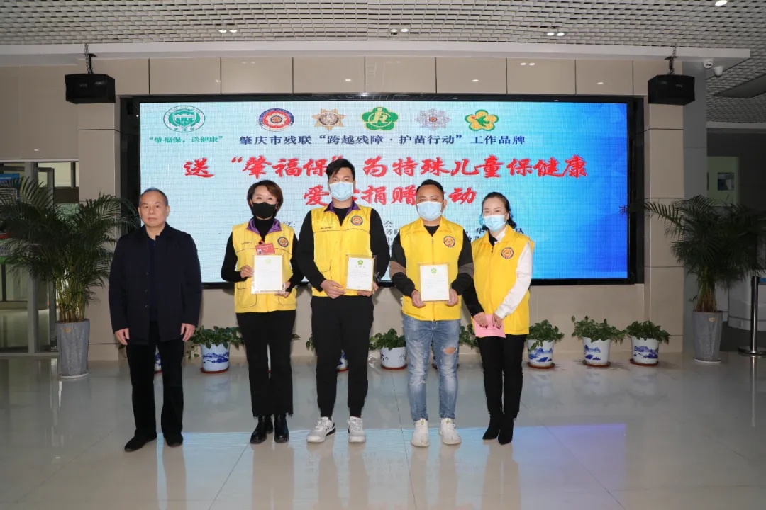 2022年1月13日,肇庆市残联在市残疾人综合服务大楼一楼大厅举办送“肇福保”为特殊儿童保健康爱心捐赠活动。市残联党组成员、二级调研员陈少强,广东狮子会三支服务队代表,受助残疾儿童及家长代表、市残联康教科及康复中心代表等参与了活动。 本次活动得到了广东狮子会星火服务队、岭南服务队和华贤服务队的慷慨捐赠和大力支持,共为肇庆市定点康复机构515名在训残疾儿童购买“肇福保”普惠性医疗保险,给特殊儿童提供了一个“更暖心、更稳固”的保障,同时也对在训儿童送上了新春的祝福。活动中,陈少强代表市残联向广东狮子会三支服务队回赠了感谢状。