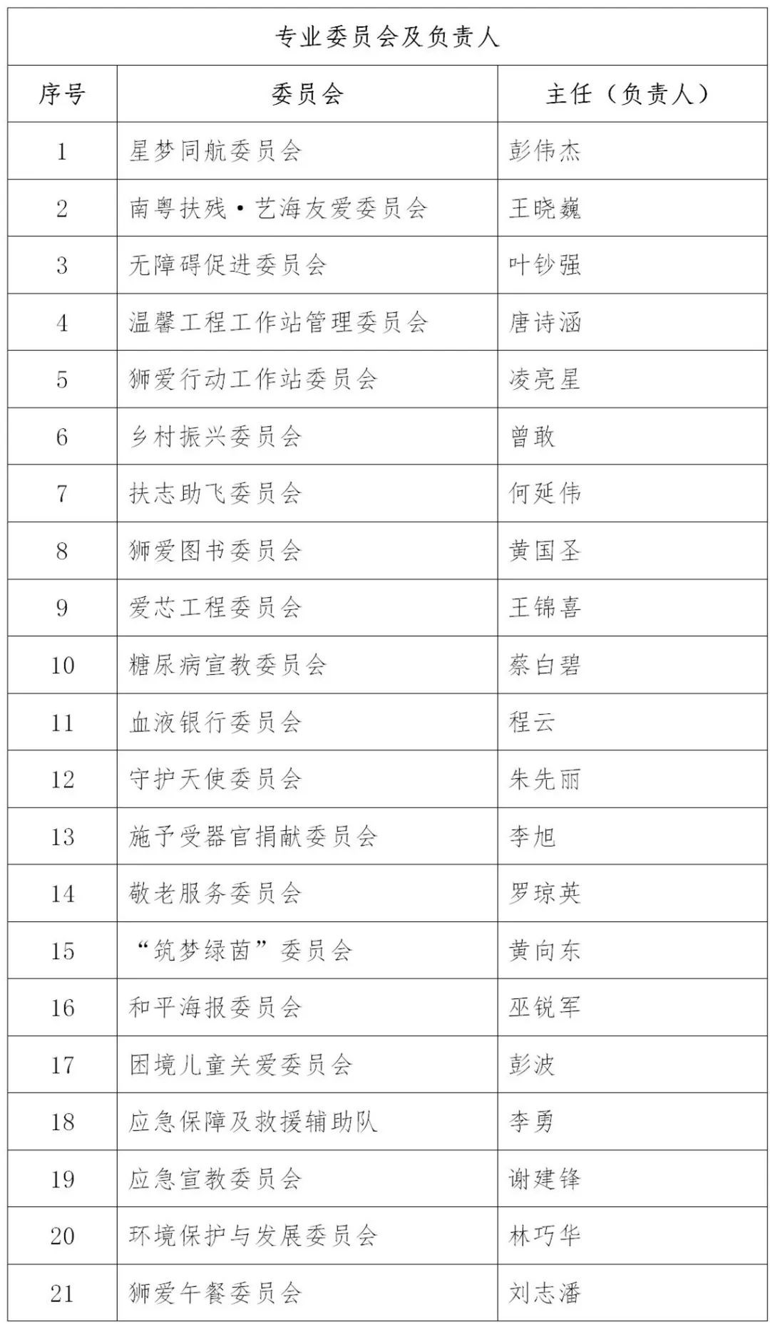 根据本会第二十一届会员代表大会表决通过的《广东狮子会章程》《广东狮子会工作规则》之规定,及结合广东狮子会第二十一届理事会预备会议之决议。本年度设立的内设机构、分支机构(委员会)及负责人名单如下: 各机构负责人及其团队名单于广东狮子会新版官网发布,任职时间从2022年7月1日起至2023年6月30日止。