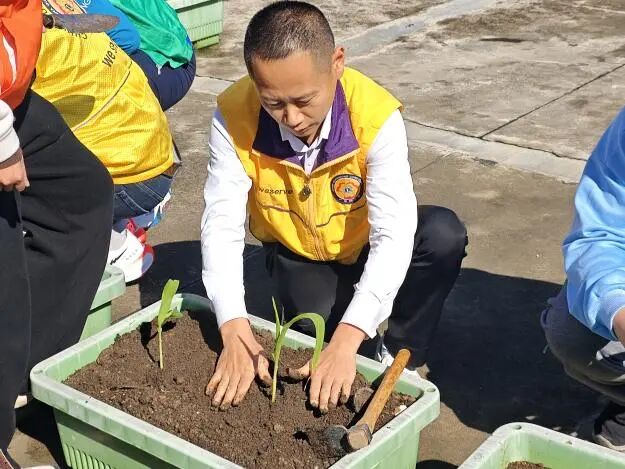 3年12日,在绿意盎然的植树节之际,广东狮子会岐江服务队与中山市残疾人托养中心的学员们共同迎来了一场特殊的植树活动。在本次活动中,岐江服务队的会员们带领学员们种下树苗,以实际行动传递环保意识与对大自然的敬意。每一棵新栽的树苗都象征着生命的延续与希望的播种,也见证了广东狮子会会员与学员们共同努力的成果。 广东狮子会会员耐心沟通示范,教每位中心学员正确种植和照料树苗 通过亲身参与植树,学员们不仅学习到了关于植物生长与环境保护的知识,还在接触自然的过程中感受到了生命的力量。岐江服务队的会员们耐心地教每一位学员如何正确地种植和照料树苗,确保他们能够在亲自种植这个过程中获得宝贵的经验与愉悦的心情。 本次植树活动,不仅让中山市残疾人托养中心的学员们体验了植树的乐趣,更重要的是提升了他们对生活的热爱,广东狮子会会员为他们带去了关心和社会的融入感。岐江服务队将继续携手各社区,积极投身公益事业,为建设更加和谐的社会贡献自己的力量。 广东狮子会会员带领托养中心学员悉心种植树苗感谢广东狮子会中山代表处监督组组长杨雪峰,广东狮子会岐江服务队第一副队长魏嘉林、第二副队长汪阳峰、秘书长邱恒、会员林藻华、会员何辉玲以及准会员李梓荣的无私奉献,他们的参与让这次活动得以圆满成功,也为广东狮子会的使命增添了绚丽的一笔。 广东狮子会会员与残疾人托养中心学员大合照 撰文、摄影:广东狮子会岐江服务队 审核:夏绣、刘平、覃钦聪