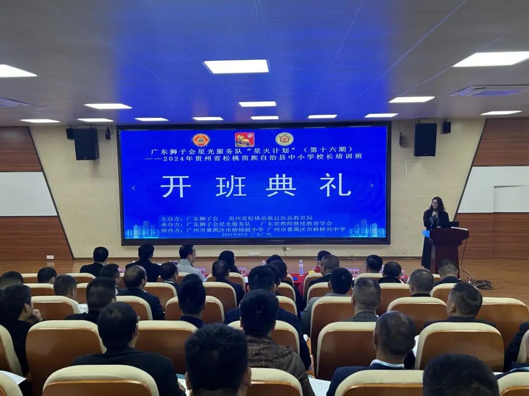 3月9日上午,广东狮子会星光服务队“星火计划”(第十六期)——贵州省松桃苗族自治县中小学校长培训班开班典礼在广州市番禺区市桥锦庭小学隆重举行。本次培训由广东狮子会与贵州省松桃苗族自治县教育局联合主办,广东省教师继续教育学会和广东狮子会星光服务队共同承办,广州市番禺区市桥锦庭小学、侨兴中学和广州市智能教育科技协同创新中心共同协办。广东狮子会星光服务队2023-2024年度队长李倩文,上年度队长饶先文、第二副队长黎念辉和会员何筱婷,广东省教师继续教育学会常务副秘书长王增海、监事王俊欢、培训中心副主任钟燕姬、信息技术专委会副秘书长常龙,广州市番禺区教师进修学校(番禺区教师发展中心)教育技术部主任丘志强、教研员伍健强,广州市番禺区市桥桥兴中学校长叶常青、锦庭小学校长郭锦辉、佛山市南海区桂城街道桂江二中校长龙海平等出席了开班典礼。本次培训班共有50名松桃苗族自治县中小学校长参加学习。 培训班开班典礼现场 广东狮子会星光服务队2023-2024年度队长李倩文首先致辞,她阐述了“星火计划”启动的初衷及其深远意义,她指出,星火计划旨在将珠三角发达地区的优质教育教学资源输送到欠发达区域,帮助乡村教师成长和进步。希望通过此次培训,能够助力松桃教育,通过实地考察珠三角多个知名学校的先进管理模式和教育理念,有效提升校长的专业素养和学校管理水平,并最终惠及松桃广大中小学生,以实现松桃教育高质量发展。 广东狮子会星光服务队队长李倩文致辞 番禺区教师发展中心教育技术部门主任丘志强首先对前来参加培训的松桃苗族自治县的中小学校长表示热烈的欢迎,随后简要介绍了番禺区当前的教育发展概况和取得的成就,并希望本次培训能切实提升参训校长们的治校能力与管理水平。 番禺区教师进修学校(番禺区教师发展中心)教育技术部主任丘志强致辞 广东省教师继续教育学会的常务副秘书长王增海就本次培训方案进行了详尽解读。他着重强调了本次培训方案设置的科学性和针对性,他指出本次培训最大的亮点是沉浸式名校访学模式,十天的培训将走访广州、东莞、佛山三地多所名校。这些名校在教育教学、学校管理等方面都有着独特的经验和优势,将为参训学员们提供一个开阔视野、学习借鉴的机会。 广东省教师继续教育学会常务副秘书长王增海解读培训方案 佛山市南海区桂江二中校长龙海平在讲话中倡议参训校长们积极转换角色,充分运用校长的视角去深入观察和分析珠三角地区诸多名校的运作模式与成功经验,从教学理念系统、教学行动系统、教学监控系统和教育评价系统,去观摩课堂,观察课程,学习先进的办学经验和管理模式,思考一些关键点和难点。 佛山市南海区桂江二中校长龙海平致辞 松桃苗族自治县第二中学校长杨帆作为学员代表发言,他首先代表松桃的校长们感谢广东狮子会星光服务队提供本次参加培训的机会,感谢广东省教师继续教育学会对本次培训的精心组织,并要求所有学员务必珍视这段宝贵的学习时光和难得的机会,认真学习,遵守纪律,自我约束,塑造良好的松桃教育形象。 松桃苗族自治县二中杨帆校长代表学员发言 参加开班典礼全体人员合影留念 本次培训活动自3月9日开班,至3月17日结束,共9天。培训将邀请资深的教育专家和一线实践经验丰富的校长,围绕教育改革、教学创新、学校管理等主题,采用“理论讲座+名校访学+跟岗学习+总结交流”的复合型培训模式深入探讨。课程内容既有理论的深度,也有实践的温度,旨在帮助参训校长拓宽视野,更新办学理念,增强治校能力。 “星火计划”作为一个致力于借助师资培训途径改善乡村教育教学质量、促进乡村教育高质量发展的公益项目。“星星之火,可以燎原”,这句饱含激励的诗词,正是对“星火计划”内涵的生动诠释。每一场培训,每一次的思想碰撞,都可能是点燃教育革新的小小火花。通过“星火计划”第十六期的实施,希望能够在松桃苗族自治县乃至更广的区域,点燃更多教育的星火,让这些星火连成璀璨的银河,照亮孩子们通往未来的道路。 撰文、摄影:广东狮子会星光服务队 审核:相雪廷、林峰、李慧婵、张志红