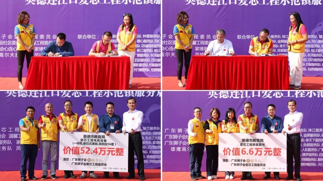 仪式上,广东狮子会共捐赠爱芯工程电教设备56套,覆盖连江口镇区全部学校,并举行连樟村及连江口中心小学“温馨工程”挂牌仪式。