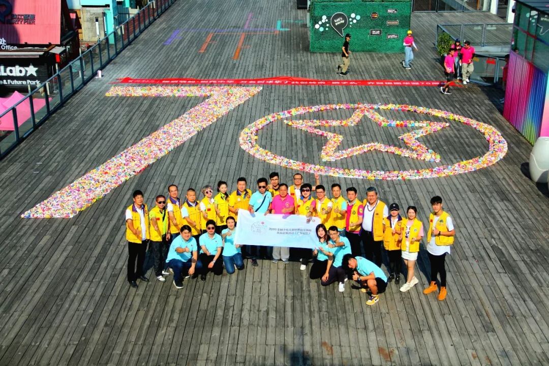 与此同时,在郭德勤会长的带领下,大家一起将孩子们提前做好的1万个具有民族特色的手工艺狮子头组成一个“70”字样,向伟大祖国70华诞献礼!