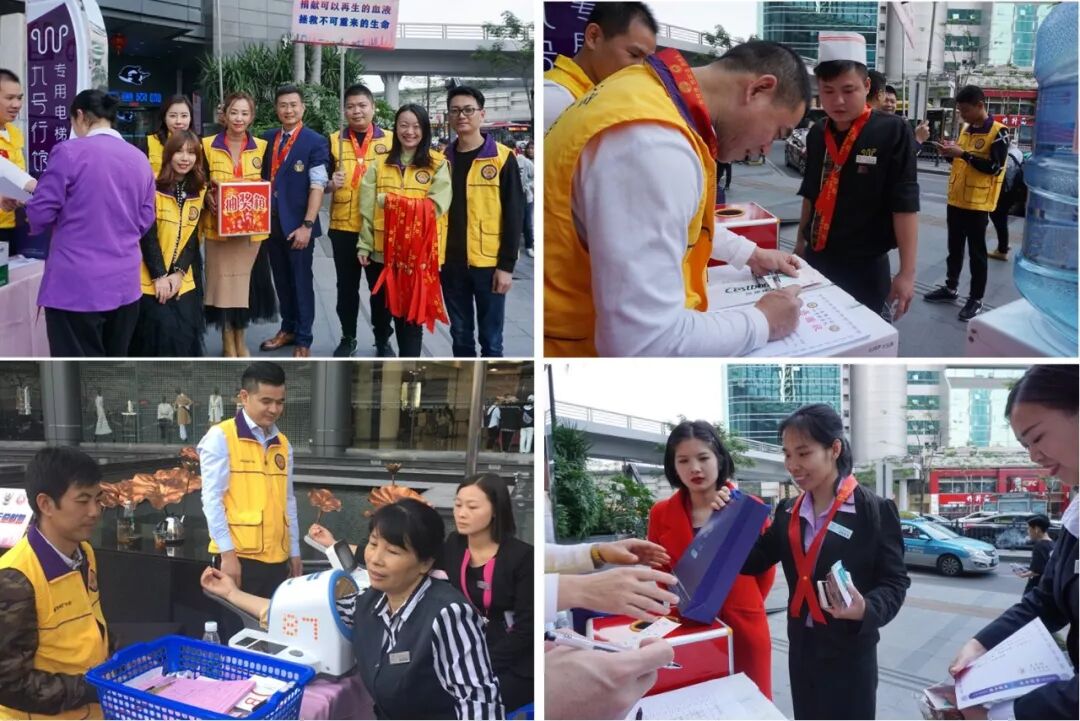 2019年12月31日,“无偿献血 温暖四季”血液银行百人献血活动在广州天河举行,近百位会员、爱心企业员工、市民来到血液中心的献血车里,积极献血,为无偿献血事业贡献自己的力量。 本次活动由广州血液中心、广东狮子会血液银行委员会指导,广东狮子会广州第三代表处发起,广东狮子会四季服务队与爱心企业联合主办。活动由闫春雷狮兄担任大会主席,梁立雄狮兄担任主持。广东狮子会2019-2020年度会长詹晓阳狮兄、广州第三代表处主任梁敏宁狮姐、血液银行委员会主席陈伟狮兄等众多成员共同参加,向市民群众宣传无偿献血知识,呼吁为无偿献血贡献力量。 广东狮子会会长詹晓阳狮兄、广州第三代表处主任梁敏宁狮姐为四季服务队与爱心企业颁发锦旗 随着活动的开始,瞬时间本来宽敞的广场热闹并拥挤起来,身着黄马甲的会员分工有序,有的在为市民讲解无偿献血知识,有的指导献血者填写表格,有的引导献血者化验血、量血压,有的去献血车上为献血者端送温水、发放礼品。参与无偿献血的爱心人士按照工作人员的要求,进行血样采集和身体检查,有序排队采血,大家的脸上洋溢着灿烂的微笑,都为自己的爱心举动感到自豪。最终,在大家的努力下,现场共有89位爱心人士参与到无偿献血活动,共计采血26900毫升。 会员为献血者准备了丰厚的礼物,鼓励大家积极参与 “第一次参加献血,心里有点害怕,但想到能帮助别人,就勇敢撸起袖子了。”一名爱心企业员工拿着献血证说,他身边的同事们也一致说以后再一起组团去献血,无偿献血的种子已在这群爱心企业员工中生根发芽。 无偿献血是无私奉献、救死扶伤的崇高行为,千万个无偿献血者,将涓涓细流汇聚成河,让垂危的生命焕发生机!感谢所有参与本次活动的会员和爱心人士,我们呼吁更多的人能够参与到我们的队伍中,共同奉献爱心,推动无偿献血事业健康持续发展。