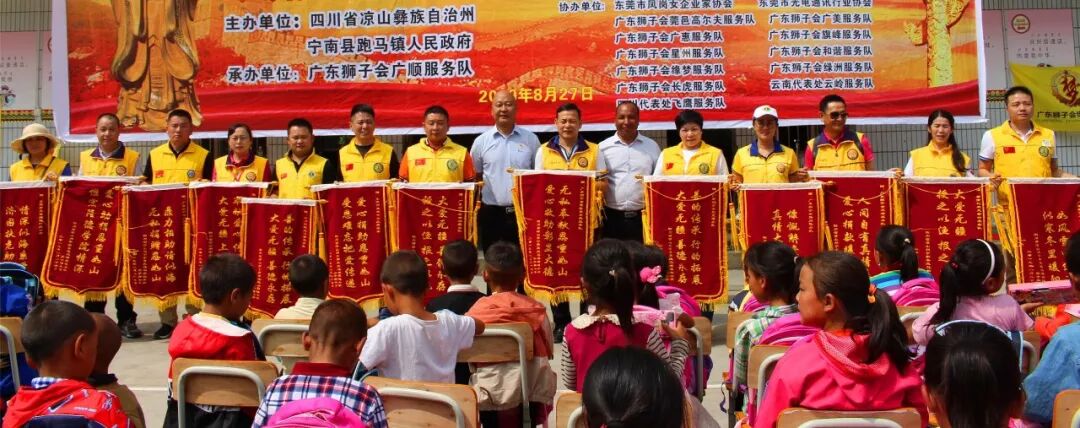 2019年8月27-28日,广东狮子会广顺服务队联合旗峰、绿洲、和谐、广美、莞邑高尔夫、长虎、缘梦、星州、广惠服务队,中国狮子联会云南代表处云岭服务队、四川代表处飞鹰服务队及东莞市凤岗女企业家协会、东莞市光电通讯行业协会、爱心企业、爱心人士共计四十多人,在大会主席朱正武狮兄、总策划周器狮兄的带领下,经过长途跋涉,到达四川省凉山州宁南县三所学校,开展扶志助飞服务。