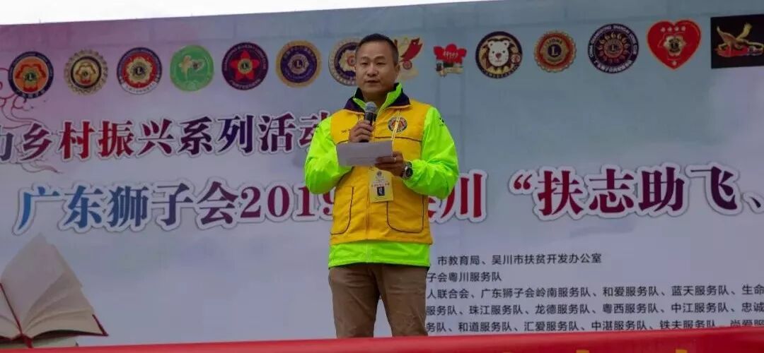 2019年12月21日,助力乡村振兴系列活动之广东狮子会2019年吴川“扶志助飞、拥抱未来”大型联合服务活动在吴川市顺利举行。本次活动由广东狮子会粤川服务队主办,岭南、珠江、红棉、蓝天、生命之光、北部湾、中江、龙德、汇爱、粤西、铁夫、忠诚、隆都、粤龙、中茂、和爱、和道、中湛、尚爱等服务队共同参与,活动共投入服务经费25万余元,为150名贫困学子提供资助。 吴川市副市长庞观保、本次活动大会主席王华波狮兄、广东狮子会湛江代表处筹建小组主任邓举龙狮兄等领导、会员出席本次活动。仪式上,吴川市副市长庞观保赞扬了广东狮子会各服务队无私奉献、助人为乐的大爱精神,希望受资助的学生们永怀一颗感恩的心,学好知识、练好本领,争取早日成材,回报国家和社会。 吴川市副市长庞观保 大会主席王华波狮兄