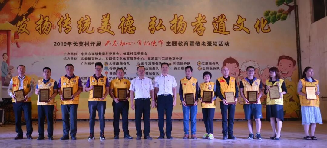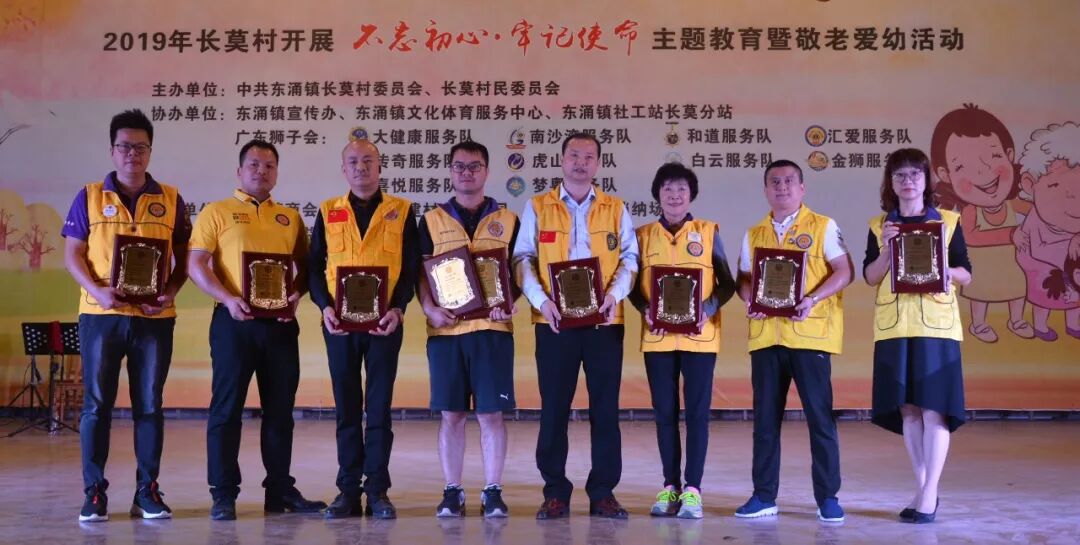 2019年11月8日,由广东狮子会大健康服务队发起,联合珠江、蓝天、传奇、同心、白云、金狮、茗德缘、汇爱、地势坤、粤梦、虎山、和道、喜悦、德心、南沙湾等十多支服务队举办的南沙东涌镇长莫村第九届敬老联合服务顺利举办,当天共有60多位会员参与服务。