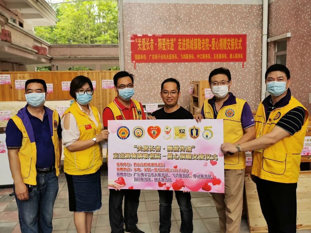 尊老、敬老、爱老、助老是中华民族的传统美德。为进一步改善敬老院环境,让老人们生活舒心,安享晚年,2020年5月22日,广东狮子会铁夫服务队联合飞鸿、中江、五邑、唐人服务队开展“关爱长者·狮爱传递”江门市鹤城镇敬老院捐赠活动,向长者们捐赠总价值2.35万元的家电和家具一批,让长者们感受到社会的温暖与关爱。 活动开始前,狮兄狮姐们就已经纷纷投入“作战状态”,把三车满满的家电和家具物资送到敬老院,完成卸车、搬运、安装、摆放、贴爱心贴等各项工作。 捐赠仪式上,鹤城镇敬老院院长李振书对广东狮子会的善德善行表示敬意和感谢,指出捐助活动充分体现了敬老爱老的中华民族传统美德。同时呼吁社会各界积极投身公益事业,关爱社会民生,支持老人事业,让社会更加和谐、人民更加幸福。 至此,“关爱长者·狮爱传递”走进鹤城镇敬老院-爱心捐赠交接仪式圆满举办。希望通过本次爱心捐赠活动,能够影响更多人、更多企业了解狮子会文化,参与狮子会服务。让我们将继续携手同行,传递爱心、奉献狮爱,帮助更多有需要的人,共同推进公益服务事业! 本次活动捐赠的物资