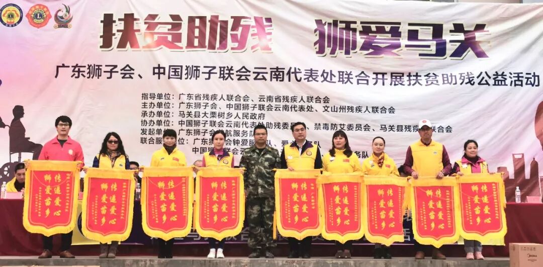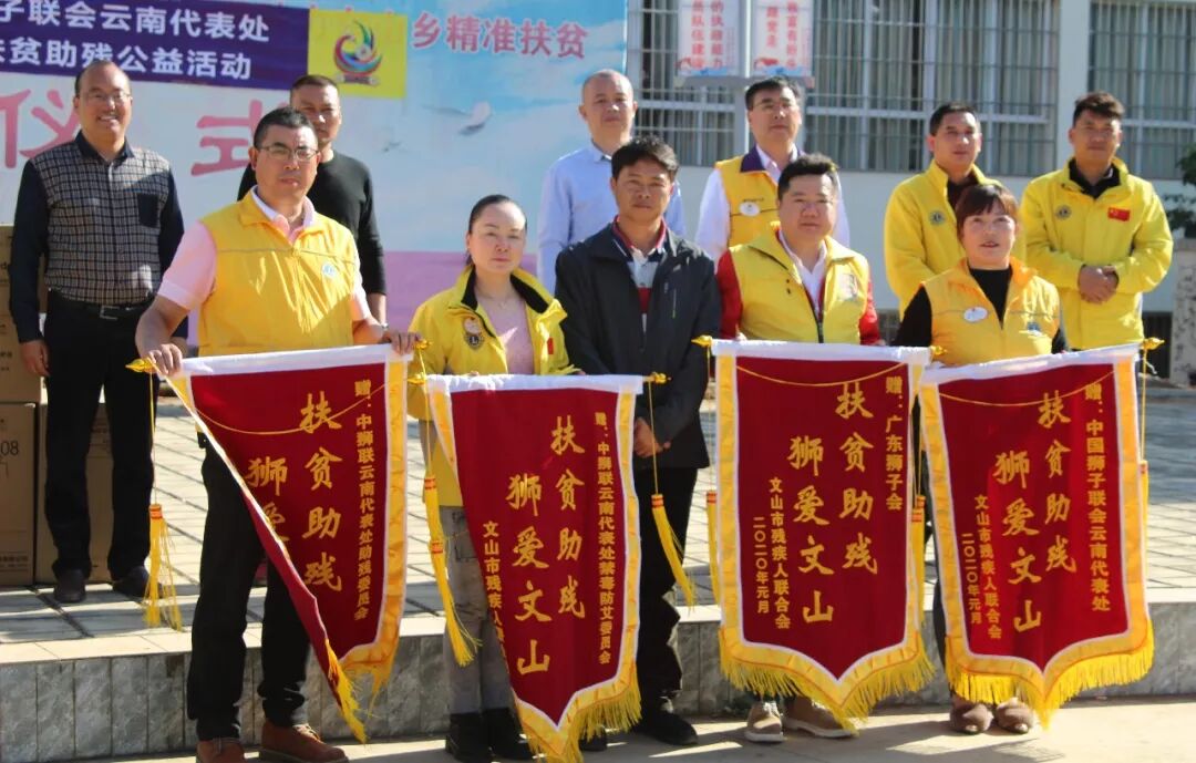 2020年1月15-17日,为做好东西部残疾人扶贫协作工作,广东省残疾人联合会(下文简称“广东省残联”)组联部部长陈海龙、广东狮子会会长詹晓阳狮兄带领广东省残联、广东狮子会一行赴云南省文山壮族苗族自治州文山市薄竹镇、东山乡、马关县三地开展扶贫助残联合服务活动。活动中,广东狮子会共投入服务经费超过10万元,为当地贫困残疾人捐赠电器、棉被等一批爱心物资,并送上新春的美好祝福。 本次活动由广东省残联、云南省残联指导,文山州残联、广东狮子会、中国狮子联会云南代表处主办,广东狮子会慈航服务队发起,广东狮子会钟爱、爱心、云南代表处云天、云岭服务队联合参与。文山州残联三级调研员余慧仙、马关县人民政府副县长杜兴宏、文山市残联理事长李英科、马关县残联理事长卢兴灿、薄竹镇党委书记江衡、东山乡党委书记杨绍敏、中国狮子联会云南代表处主任杨红狮姐、广东狮子会广州第一代表处主任张雷狮兄、活动大会主席罗辉狮兄等领导、会员分别参加有关活动。 捐赠仪式上,广东省残联、云南省残联嘉许广东狮子会、中狮联云南代表处的公益善举 活动中,广东省残联组联部部长陈海龙表示:习近平总书记对东西部残疾人扶贫工作格外重视和关注,亲自部署。在县委、县政府的坚强领导下,全乡上下紧紧围绕2019年高质量脱贫摘帽目标任务,凝心聚力、落实责任、攻坚克难,深入推进脱贫攻坚各项工作,农村基础设施不断改善,生产生活条件不断提高,增收致富渠道不断拓宽,广大人民群众“两不愁三保障”突出问题得到有效解决,村容村貌发生了可喜的变化。相信文山州在政府部门、爱心单位和老百姓的共同努力下,定能打赢脱贫攻坚战。 广东省残联组联部部长陈海龙 詹晓阳会长表示:感谢各级政府部门、爱心企业大力支持本次活动。在扶贫助残活动中,广东狮子会将继续积极配合各级政府部门,助力打通脱贫攻坚战最后一公里,希望贫困残疾乡亲们能够自力更生,提高工作能力和生产能力,让日子过得越来越好。 广东狮子会会长詹晓阳狮兄 广州第一代表处主任张雷狮兄(左) 慈航服务队队长罗辉狮兄(右) 16日,“扶贫助残 狮爱文山”捐赠仪式分别在文山市薄竹镇、东山乡举行。仪式上,一众会员把崭新的电磁炉、电饭煲送到困难群众户及残疾群众手中,并向部分群众送去慰问金,祝愿他们春节快乐。 广东狮子会、中狮联云南代表处共为薄竹镇、东山乡困难群众及残疾群众捐赠爱心物资 捐赠仪式 为各支持单位、联合服务队颁发锦旗、感谢状 詹晓阳会长接受文山市广播电视台的采访 17日上午,广东省残联、广东狮子会、中国狮子联会云南代表处一行来到文山州马关县,开展“扶贫助残 狮爱马关”活动。活动中,会员为马关县困难群众及残疾群众捐赠价值5.78万元的爱心物资。 广东狮子会、中狮联云南代表处为马关县困难群众及残疾群众捐赠爱心物资 马关县残联向广东狮子会、中狮联云南代表处各服务队颁发锦旗 捐赠仪式现场 活动期间,会员一行组成慰问团,深入走访慰问文山市、马关县8户贫困残疾人家庭,深入了解当地困难残疾人的家庭、生产情况。本次探访的慰问品均为广东狮子会慈航服务队根据当地贫困残疾人需求采购的爱心物资,包括优质棉被、电磁炉、电饭锅等物品,让当地贫困残疾人感受到党和政府以及社会爱心人士的关怀,增强残疾人热爱生活和自强脱贫的信心,提升幸福感和安全感 。 活动中,广东省残联组联部部长陈海龙、广东狮子会会长詹晓阳狮兄带领会员一行深入当地残疾人家庭进行探访 给残疾人更多的温暖和关爱,让他们和普通人一样感受到社会主义的优越性,是构建社会主义和谐社会不可缺少的一环,是社会文明进步的重要标志。“扶贫助残”是一项长期系统的工程,广东狮子会将继续秉承“正己助人 服务社会”的宗旨,在扶贫助残工作中,配合各级政府部门,携手各公益单位、企业,共同携手,为困难群众架起一座爱心桥梁,共同唱响“脱贫攻坚”的伟大乐章。