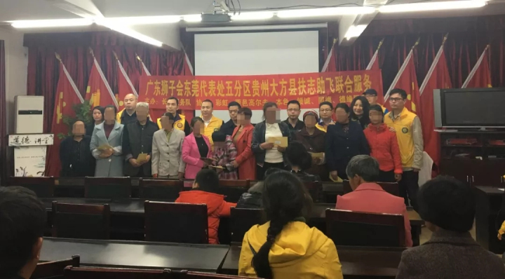 2018年4月14-15日,广东狮子会2017-2018年度东莞代表处第五分区长缘服务队联合彩虹服务队、同德服务队、倾诚服务队、莞邑高尔夫服务队、德缘服务队、本色服务队前往贵州大方县开展关爱贫困残疾儿童服务活动。