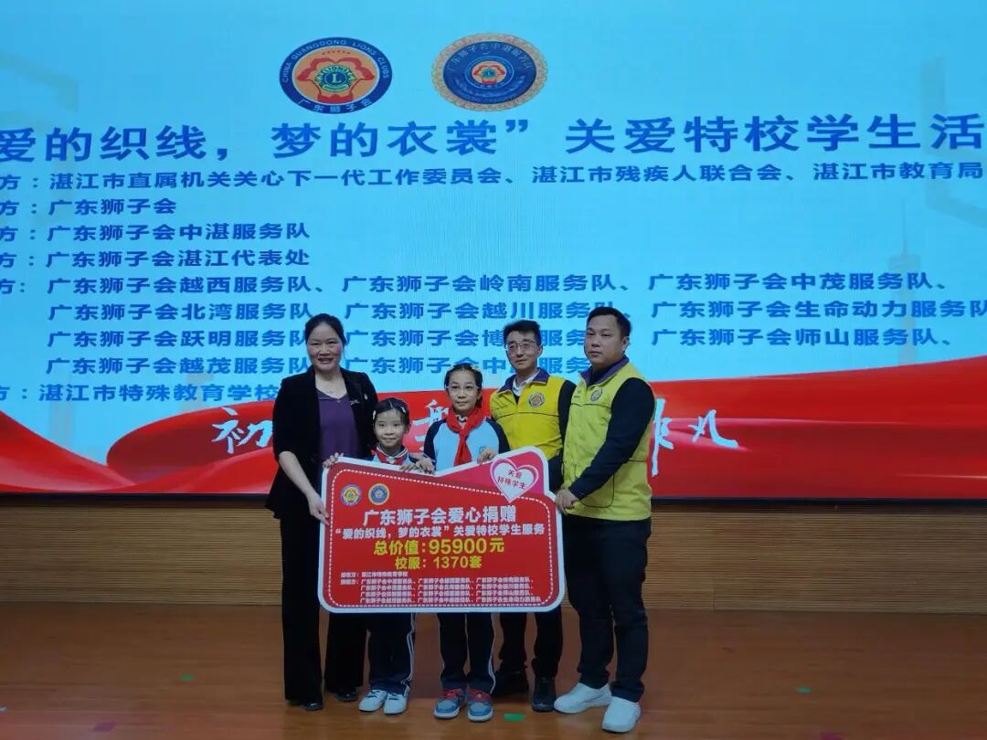 12月16日上午,广东狮子会中湛服务队组织举办的“爱的织线,梦的衣裳”爱心校服捐赠仪式在湛江市特殊教育学校举行。此次共计为685名学生捐赠了价值95900元的校服。 湛江市直属机关关心下一代工作委员会、市残疾人联合会、市教育局领导出席本次活动。活动中,市教育局党组成员、副局长林尚武表示了对广东狮子会的善举表达了诚挚感谢。林尚武副局长表示这些捐赠物资不仅切实解决了学校的实际困难,有力地填补了物资缺口,更给予了孩子们极大的精神鼓舞,让他们深切感受到社会的关爱与温暖,增强了他们面对生活和学习困难的信心。 在捐赠仪式上,广东狮子会中湛服务队的代表表示,他们希望通过这次捐赠活动,能够激励更多的社会力量关注特殊教育学校的学生,为他们提供更多的帮助和支持。同时,也希望这些学生能够努力学习,积极面对生活。 此次捐赠活动受到了湛江市特殊教育学校师生的热烈欢迎与衷心感谢,他们表示,这些校服不仅为学生们提供了更加整洁、统一的着装,更让他们感受到了社会的温暖和关爱。 最后,学校向广东狮子会中湛服务队等12支服务队赠送了感谢牌,以表达对他们无私奉献的崇高敬意。一件件校服,在交接的那一刻,便不再仅仅是一种物质支持,更是一种精神鼓舞,一场爱的教育。相信这股爱的暖流,一定会滋润同学们的心田,为他们带来温暖和力量。 此次助残活动,不仅为湛江市特殊教育学校的孩子们送去了温暖与希望,更彰显了广东狮子会中湛服务队等12支服务队的社会责任感和爱心精神,为构建和谐包容、充满关爱的社会环境贡献了积极力量。 特别鸣谢:广东狮子会越西服务队、中茂服务队、中廉服务队、越川服务队、越茂服务队、北湾服务队、岭南服务队、师山服务队、生命动力服务队、博爱服务队、跃明服务队(排名不分先后)。 图文提供:广东狮子会中湛服务队 审核:吕科霖、李雷、萧火均